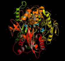 7. 1 2 3 PDB: 1PG3; Gulick AM, Starai VJ, Horswill AR, Homick KM, Escalante-Semerena JC (March 2003). "The 1.75 A crystal structure of acetyl-CoA synthetase bound to adenosine-5'-propylphosphate and coenzyme A". Biochemistry. 42 (10): 2866–73. doi:10.1021/bi0271603. PMID 12627952.