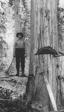 Logger falling a Western red cedar on the Upper Adams, c.1910