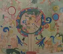 Her time in Mexico was spent travelling on horseback across the country, using her artistic skills to record the friezes, carvings and other archaeological treasures that were being unearthed in the Yucatán.[3] Her first trip lasted 18 months, when she travelled continually making notes and sketches.[5] As the 1890s passed, Breton spent less time on return visits to England and more time on her travels in Mexico. Her observations became more scientific and broadened to include the geology, the canyons and volcanoes.[6] However, she is particularly known for her colour paintings of the frescos discovered at Teotihuacan in 1894, at a site that became known as Teopancaxco.[7]
