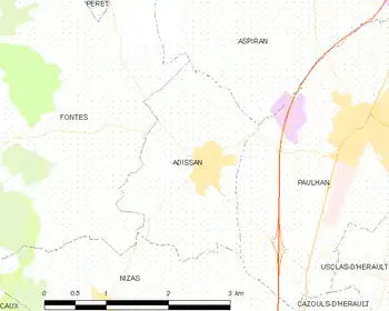 Adissan (French pronunciation: [adisɑ̃]; Occitan: Adiçan) is a commune in the Hérault department in the Occitanie region in southern France.