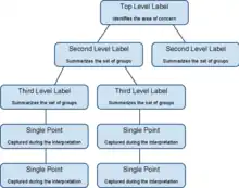 The tool is commonly used within project management and allows large numbers of ideas stemming from brainstorming[2] to be sorted into groups, based on their natural relationships, for review and analysis.[3][4] It is also frequently used in contextual inquiry as a way to organize notes and insights from field interviews. It can also be used for organizing other freeform comments, such as open-ended survey responses, support call logs, or other qualitative data.