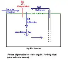 Example of an overall water balance An example is given of the reuse of groundwater for irrigation by pumped wells. The total irrigation and the infiltration are: