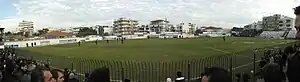 Built and opened in 1950, it can hold up to 2267 spectators. On one occasion, a record 4067 fans were seated within the precinct in 1979.[1] Two new platforms were constructed in 1994.[1] To honor former chairman Dimitris Kontikakis, the club board decided to change the stadium's name to Dimitris Kontikakis Stadium.[3]