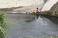 Aeta woman washing clothes in Iriga City.