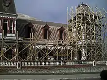 On 14 February 2007, the Regional Secretary (Seremi) of the Ministry of Public Works, Beatriz Valenzuela, wrote in an article in the online newspaper El Rancahuaso, "The current state of the historic monument is bad, because of the deterioration of the roof, which over the years has had permanently leaked water and humidity. This can be easily seen in the damaged wood of its inside enclosure and the great frame of the mansard roof, which is of oak wood."[13] Some months later, on 23 August, Valenzuela announced that the restoration of the building would begin that same day, after it was authorized by the Regional Government; the building would become a cultural center, housing the local public library and art galleries.[18] The restoration work was the responsibility of development firm Atelier Consultores.[19]