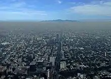 In April–May 2016, ozone and suspended matter pollution in Mexico City reached levels that were detrimental to health, though the criterion to signal a pollution alert was lower in 2016 than in the 1980s.[6] The city's population continues to grow, to spread out, which lengthens automobile trips, and the number of autos in the city increases yearly.[7]