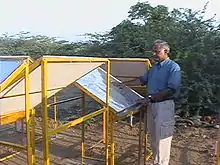 By the time they were ready for their first practical installation, they heard that one of their members, Girja Sharan, had obtained a grant to construct a dew condenser in Kothara, India. In April 2001, Sharan had incidentally noticed substantial condensation on the roof of a cottage at Toran Beach Resort in the arid coastal region of Kutch, where he was briefly staying. The following year, he investigated the phenomenon more closely and interviewed local people. Financed by the Gujarat Energy Development Agency and the World Bank, Sharan and his team went on to develop passive, radiative condensers for use in the arid coastal region of Kutch.[36] Active commercialisation began in 2006.[37]