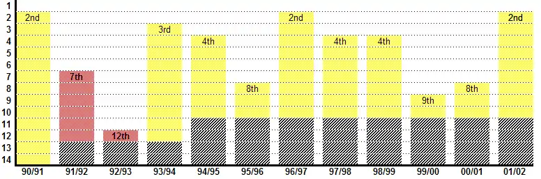 During the 1990s, with Alex MacDonald at the helm, Airdrie worked their way into the Premier Division in the 1991–92 and 1992–93 seasons, were regularly considered challengers for promotion and recognised as one of the bigger clubs in First Division.
