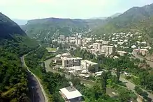 Alaverdi (Armenian: Ալավերդի, Armenian pronunciation: [ɑlɑvɛɾˈdi]), is a town and municipal community in the Lori Province at the northeastern part of Armenia, near the border with Georgia. It is located at the only direct rail link between Armenia and Georgia. Situated at the bottom of the Debed river gorge, Alaverdi is an important commercial and industrial centre in northern Armenia.