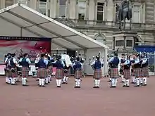 In 2000, they began attending the annual World Pipe Band Championships and, in 2001, placed 7th in the grade 1 finals.[4] The group was one of the top competitive pipe bands in both Canada and the world.
