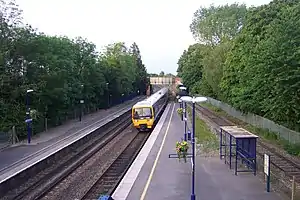 ![]() The station from the footbridge, with a Network Turbo train of First Great Western passing through. | |