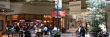 Facing a major vacancy with the 2000 closure of Lamonts, the mall was renovated and expanded in 2002.[22] The former Lamonts store was purchased and razed for the construction of a new Nordstrom that opened in 2003. The former Nordstrom was leveled in its turn for the construction of The Village, an attached, open-air lifestyle area on the mall's northern side comprising new shops, restaurants and a Borders Group store.[23] A second expansion was simultaneously constructed on the mall's southwest side; named The Terraces, it incorporated an expanded food court and restaurants as well as a 16-screen Loews Cineplex Entertainment multiplex.[24][25] The theater, which opened on March 25, 2005,[26] replaced an older Grand Cinemas theater that Loews operated just outside the mall boundaries.[27][28] The expansion included two new parking garages, and the theater was constructed over subterranean parking. The 'mall' was dropped from the name at this time and became simply Alderwood, describing itself as a "lifestyle center".[23]