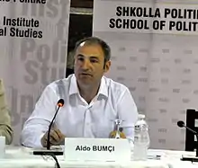 Aldo Tonin Bumçi (born 11 June 1974) is a member of the Assembly of the Republic of Albania for the Democratic Party of Albania.[1][2] He was Minister of Justice from 2005 to 2007, Minister of Foreign Affairs on 2013. [3][4][5] He is also member of Committee on Legal Affairs, Public Administration and Human Rights and Committee on European Integration.[4]