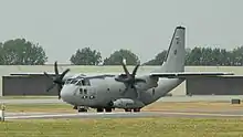 The Alenia C-27J Spartan[2] is a military transport aircraft developed and manufactured by Leonardo's Aircraft Division (formerly Alenia Aermacchi until 2016).[3] It is an advanced derivative of the former Alenia Aeronautica's earlier G.222 (C-27A Spartan in U.S. service), equipped with the engines and various other systems also used on the larger Lockheed Martin C-130J Super Hercules. In addition to the standard transport configuration, specialized variants of the C-27J have been developed for maritime patrol, search and rescue, C3 ISR (command, control, communications, intelligence, surveillance and reconnaissance), fire support/ground-attack and electronic warfare missions.