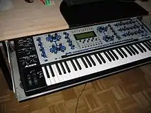 The Alesis Andromeda A6 (A6 is an acronym: A - A, 6 - SIX, and their consonance corresponds to "ASICs" which is an abbreviation for "Application Specific integrated Circuits") is a 16-voice, 16-channel multitimbral analog synthesizer by Alesis which was released in 2000 and discontinued in 2010.[2] The Andromeda has analog oscillators and filters combined with modern digital control. It can be considered a hybrid of older and newer technologies, but its entire signal path is purely analog. The VCOs have a very practical pitch correction function, a feature missing on other old polysynths. The VCOs have FM and ring modulation and sub-oscillators. These features makes it possible to create a much wider sonic palette than usual on analog polysynths.