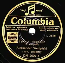 While Alexander considered himself Russian in general, he assumed that he had some Polish blood too: "I never met people with my surname in Russia, but in Poland it is met more or less often... one of my great-grandfathers was probably a Pole".[2][4][5] He also recognised that he had some Ukrainian ancestry and Ukrainian as one of his native languages. In his letters Vertinsky recalled a time when he was working at Dovzhenko Film Studios and Ukrainian actress Natalia Uzhviy was surprised to hear his Ukrainian accent.[6][7][8][9]