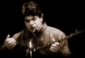 Ali Akbar Moradi (Kurdish: عەلی ئەکبەر مورادی; born 1957) is a well known Kurdish musician and composer.[1][2] He was born in Gahvareh in the Kermanshah Province of Iran. He started music at a very early age, and learned the Kurdish maqam repertoire and tanbur (Kurdish lute) under the supervision of Kurdish masters such as Mirza Sayyed Ali Kafashyan, Kaki Allah Morad Hamidi and Sayyed Vali Hosseyni. He gave his first recital in 1971 in Kermanshah. In 1981, he began collaborating with the Kurdish singer Shahram Nazeri, and performed throughout Europe and North America. He is an expert on the tanbur instrument, which is considered sacred in Kurdish Yarsani[1] and sufi music.