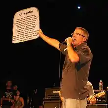 Since 1987 it has been common for Aukerman to hold up a sign displaying the "All-O-Gistics" when performing the song, as seen here in 2014.