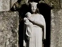 Inside the church is a memorial to George Montaigne, incorporating a life-size figure, dating to about 1623.[1] There are also three fragments of mediaeval tomb slabs. In the churchyard is a stone with a cup-like hollow, believed to have been used for depositing donations for lepers.[3]