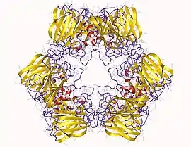 - ↑ Leulliot N, Quevillon-Cheruel S, Sorel I, Graille M, Meyer P, Liger D, Blondeau K, Janin J, van Tilbeurgh H (May 2004). "Crystal structure of yeast allantoicase reveals a repeated jelly roll motif". The Journal of Biological Chemistry. 279 (22): 23447–52. doi:10.1074/jbc.M401336200. PMID 15020593.
