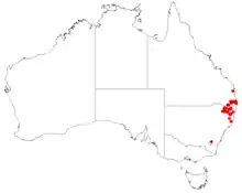 Allocasuarina rigida grows in sandy soil on volcanic outcrops in exposed situations from the McPherson Range in south-eastern Queensland to the Gibraltar Range National Park and Ebor in north-eastern New South Wales and in disjunct populations on Mount Cooroora in south-eastern Queensland and Big Nellie Mountain near Taree in north eastern New South Wales. Subspecies exsul only occurs on Mount Cooroora and subsp. rigida occurs throughout the remainder of the range.[2][8][10]