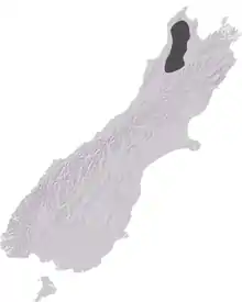 Alpinacris crassicauda is only known from West Coast Region and Tasman Region of New Zealand.[2] It can be found as far south as the Right Branch of the Rahu River, Spring Junction (42°17′31″S 172°07′24″E / 42.291844°S 172.123285°E / -42.291844; 172.123285) and as far north as the Thousand Acres Plateau, Matiri Range (41°35′37″S 172°19′21″E / 41.593646°S 172.322454°E / -41.593646; 172.322454). Alpinacris crassicauda prefer alpine tussock grasslands between 1,200–1,500 metres (3,900–4,900 ft), however, can be found as low as 1,020 metres (3,350 ft) on the Thousand Acres Plateau, Matiri Range (41°35′37″S 172°19′21″E / 41.593646°S 172.322454°E / -41.593646; 172.322454).