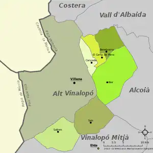 Alt Vinalopó (in Valencian, IPA: [ˈald vinaloˈpo]) or Alto Vinalopó (in Spanish, IPA: [ˈalto βinaloˈpo]) is a comarca in the province of Alicante, Valencian Community, Spain.