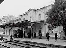 Amadora Station opened on 16 April 1888, originally under the name of Porcalhota. It was renamed Amadora on 1 February 1908.[3] The station building was rebuilt as a part of a modernization project of the Sintra Line and put into service on 15 May 1993. The quadrupling of the Sintra Line tracks between Benfica and Amadora was completed in September 1999.[4]