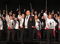 The chorus was formed in 1963[21] as the Daniel Boone Chorus with 26 members,[22][12][23] and became a member of SPEBSQSA (the Society for the Preservation and Encouragement of Barbershop Quartet Singing in America Inc.)[24] the following year. The chorus changed its name to the Ambassadors of Harmony in 1990 following its first international competition.[25] The chorus was directed by noted arranger[26] and mathematician David Wright[27][13] (now associate director) from 1981 to 1990[22][28][29][30] and again in 1999 to 2000[31] and has been directed from 1991 to 1999[32] and since 2001[33] by Dr. Jim Henry (now co-director), bass singer of the 1993 International Quartet Champion, The Gas House Gang,[34][35][36] and the 2009 International Quartet Champion, Crossroads.[37] Since 2013, the group's co-director has been Jonny Moroni, baritone of Vocal Spectrum, the BHS 2006 International Quartet Champion and 2004 International College Quartet Champion.[38][39][40]