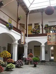 Located right next to the Casa de Portal is the city's newest and largest library. The three-story library is part of the city's plan to rejuvenate the downtown area around Parque Montalvo.[15] The library contains over 70,000 titles and has many computer stations for users.[16] The official name is the "Library of the City and Province", as it serves both the city of Ambato and the larger province of Tungurahua.