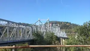 The Ambridge–Aliquippa Bridge is a steel cantilever through truss bridge which crosses the Ohio River at Ambridge, Pennsylvania. The bridge was originally named the Ambridge-Woodlawn Bridge but was soon renamed Ambridge-Aliquippa when Woodlawn was eclipsed by the rapid expansion of the Aliquippa Works of the Jones & Laughlin Steel Company. Ambridge was incorporated in 1910 - named after the American Bridge Company which had significant operations along the Ohio River opposite the Jones & Laughlin Steel Company.
