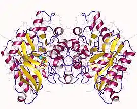 ![]() aminocarboxymuconate-semialdehyde decarboxylase dimer, Human | |||||||||