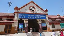 The 108.9 km (68 mi)-long 1,676 mm (5 ft 6 in)-wide 5 ft 6 in (1,676 mm) broad gauge Amritsar–Pathankot line was opened in 1884.[1] It originally belonged to the local government and was transferred to North Western Railway in 1892.[2] The Amritsar–Dera Baba Nanak branch line serves the western part of Batala tehsil. Prior to the partition of India in 1947, this line was 225.9 km (140 mi) long and was linked to Sialkot (now in Pakistan), but after partition Dera Baba Nanak became the terminus. The Batala–Qadian link serves the eastern part of Batala tehsil.[1] The 225.9 km (140 mi) long Amritsar–Sialkot line ran thus: Amritsar–Dera Baba Nanak–Narowal–Sialkot, crossing the 1.024 km (1 mi) long Ravi River Bridge.[3]