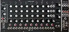 The most commonly used analog sequencer was the Moog 960, which was a module of the Moog modular synthesizer. It consisted of three parallel banks of eight potentiometers: the three banks could either steer three different Voltage-controlled oscillators (VCOs) to allow three-note chords in the sequence, or (for example) one row could steer pitch while the second row is patched through to the filter cutoff or VCA volume, and a third steers filter cutoff for a white noise generator (thus creating an extremely primitive electronic drum track).