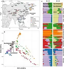 129. Kidd KK, Evsanaa B, Togtokh A, Brissenden JE, Roscoe JM, Dogan M, et al. (May 2022). "North Asian population relationships in a global context". Scientific Reports. 12 (1): 7214. Bibcode:2022NatSR..12.7214K. doi:10.1038/s41598-022-10706-x. PMC 9068624. PMID 35508562.