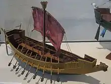 This is especially noticeable in the reliefs of the Medinet Habu temple that show the great attempted invasion of Egypt by the Sea Peoples. This relief shows us the Egyptian small yet maneuverable ships fighting against the larger yet slower ships of the Sea People.[8] It portrays the ships as platforms from which archers and slingers can pepper down the enemy from. Having such fast and maneuverable ships enabled the Egyptians to constantly harass the enemy at a range while at the same time withdraw to safety and attack from a different side. At this stage, this purpose existed mostly in the New Kingdom era, although we are led to believe that it was used during the Second Intermediate Period during the siege of Avaris by Ahmose.