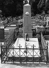 The early years of the Second Polish Republic placed onerous demands on Poland's judiciary which in turn reportedly[14] led to a high mortality rate amongst those who chose to keep working in the service of their country rather than retire. Grodyński died in 1925 and is buried at Cieszyn Municipal Cemetery (pl), but outside the impressive family tomb erected by his father-in-law Alfons Matter. The funeral procession reflected his local, regional and national standing, with fellow judges, six priests and representatives across all levels of society, including the military, led by his close friend fr Józef Londzin.[15][16]