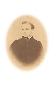 One of a large number of children of Sylwester and Anna (née Krężołek), Andrzej was born in Gdów, Galicia, Poland, to where his father had moved from Chocholów (pl) subsequent to the Battle of Gdów. (The sole battle of the Kraków Uprising was chronicled by Sylwester’s “uncle” Ludwik Kusionowicz who in 1846 was the Gdów parish priest.[2] Ludwik, who like Sylwester was born in Czchów, was later appointed Dean of Wieliczka and by EC/RM Ordination of 26 July 1871 was awarded the honorary title of Canon of Tarnów.) In addition to starting the first 'state school' in the district, conducting lessons in Polish in the former parish school building, Andrzej’s father, Sylwester, performed as the church organist. Andrzej was raised in Western Galicia but when he was only fifteen his father died (on 4 July 1877) and his elder brother Józef, a notary in Milówka, became his legal guardian. After completing his schooling Andrzej attended universities in Kraków, Graz and Vienna, then moved to Cieszyn Silesia due to his keen interest in Polish affairs centred in that region.