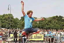 - ↑ Longman, Jeré (February 6, 2012). "That Guy in the Toga? Call Him a Slackliner". The New York Times.