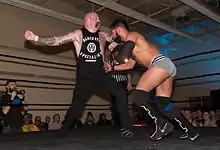 In the mid-2010s, Williams resumed his training with Josh Barnett, initially as a workout session.[13] He continued working with Barnett, but only sporadically, since he does not live in California.[13] He began attending Grapplers Anonymous, based in Lackawanna, and received further training from long-time friend and professional wrestler Jesse Guilmette.[1] During the summer of 2015, he started working on the independent circuit, and made run-ins at Smash Wrestling where he chokeslammed Tarik,[14] and at Progress Wrestling, where he powerbombed Jimmy Havoc through a table.[15] His first tag match was on an Interspecies Wrestling Halloween show, partnering Wes in a dark match, and defeating Los Dumbfucks.[16] In February 2016, he returned to Smash Wrestling, and had another confrontation with Tarik, who laid him out in the ring.[17] His first singles match was confirmed the following month after the show, but at Any Given Sunday 4, he was defeated by Tarik.[18] During the match, he tore his meniscus, which he had surgery for, before going on tour with Every Time I Die ten days later.[13]