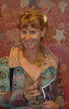 ![]() Artist Anne Schwegmann-Fielding at an art opening in Ipswich | |