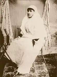 Anoushiravan Mirza also written Anushirvan Mirza was born on 19 August 1833 at Ardabil, Iran, and died on 23 October 1899 in Tabriz after developing apoplexy and paralysis. He was at Shusha, Karabakh. He was the first-born and eldest son of Prince Bahman Mirza, the governor-general (vali) of Azerbaijan in the time of Mohammad Shah Qajar. His mother was Bahman Mirza's first chief wife Princess Malek Soltan Khanom, daughter of Prince Mohammad Taghi Mirza "Hessam os-Saltaneh".[1][2] After Bahman Mirza fell out of favour at court in Tehran and exiled to Russia in 1848 his wives and children followed him to Russian occupied Caucasus province of Karabakh. But shortly after 1850 Anoushiravan Mirza moved back to Iran. And when his cousin Nasser al-Din Shah pardoned Bahman Mirza in 1872, finally Anoushiravan Mirza was rewarded with several governmental offices. In 1873 he became governor of Turshiz, 1878 governor of Talesh, later 1881-1882 governor of Tabriz, 1884-1886 and 1898-1899 of Semnan, Damghan and Shahrud, 1888-1889 governor of Borujerd and Lorestan. In 1891 he had the vizierate of the province of Kermanshah on behalf of the almighty governor and commander-in-chief of his time Hassan Ali Khan Garrousi "Amir Nezam". He also received the title of Zia' od-Dowleh (lit. Splendour of the State) - which that he became well-known - and the military rank of Amir Touman (lit. Commander of Ten Thousand, i.e. general) by Nasser al-Din Shah.[3]