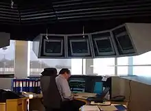 The systems are controlled by a fully automated computer system, located at the control and maintenance center. The automatic train control (ATC) consists of three subsystems: automatic train protection (ATP), automatic train operation (ATO) and automatic train supervision (ATS). The ATP is responsible for managing the trains' speed, ensuring that doors are closed before departure and that switches are correctly set. The system uses fixed block signaling, except around stations, where moving block signaling is used.[9][5] The system has been designed and built by Union Switch & Signal.[10]
