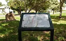 In 2012, there was a push to have Norris Park renamed to Muellerville Park.[18] Situated on Thozet's original Muellerville property, Norris Park was named as such as a tribute to William Norris, a long serving employee of Rockhampton City Council.[18] However, a petition was submitted to the council's parks and recreation committee to have it changed to Muellerville Park in recognition of Thozet's contribution to botany.[18] Although council decided to keep the name Norris Park, they revealed a commemorative stone would be installed in the park to give recognition of Thozet's pioneering work.[18] As a result, the council subsequently installed a new headstone for the graves, and a memorial marker informing visitors that "this parkland is the last remaining portion of the 66 acre experimental garden known as 'Muellerville', once owned by Frenchborn botanist and botanical pioneer Anthelme Thozet".[19]