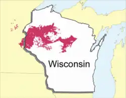 Antigo soils are among the most extensive soils in Wisconsin. They occur on about 300,000 acres (1,200 km²) in the northern part of the State. Antigo soils are well-drained and formed under northern hardwood forests in loess and loamy sediments over stratified sandy outwash. The average annual precipitation ranges from 28 to 33 inches (71 to 84 cm), and the average annual air temperature ranges from 39 to 45 °F (4 to 7 °C).[1] The soil series was named after the city of Antigo, Wisconsin.[1]
