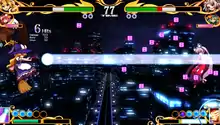 In Antinomy of Common Flowers, the player will control two characters in any given match.[5] The 'master' is the main character that they control, and can temporarily switch to their 'slave', who can be used to quickly extend combos. Additionally, when the player takes damage, some of their health will be retained with a white bar, and when playing as a slave, the white health will slowly increase. Taking damage while playing as the slave character will decrease the player's 'occult meter', and if it is emptied, the player will be forced to switch back to the master, until the meter increases again, which will gradually happen by default, but it can be increased faster by damaging their opponent.