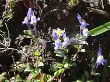 Lafuentea Lag. is a highly distinct Plantaginaceae genus containing a mere two species from the Strait of Gibraltar region. It is included in the present tribe by GRIN,[16] whereas other authors have variously allied it with the foxgloves (Digitalis) or even united with the equally puzzling Oreosolen and Ourisia in a lineage close to the broomrape Rehmannia as part of the Scrophulariaceae sensu lato.[4] In the 2013 study[5] as well as in the 2005 Plantaginaceae analysis by Albach et al.[4] Lafuentea indeed tends to resolve as an additional and basalmost lineage (subtribe in Linnean taxonomy) of the Antirrhineae, far from Digitalis, Oreosolen, Ourisia or Rehmannia; in fact, these five genera are apparently all distinct from each other at least at tribal level (Oreosolen and Rehmannia are even outside the Plantaginaceae). However, the results were not unequivocal and support for including Lafuentea in the Antirrhineae not very robust. Besides, the interrelationships of the Plantaginaceae tribes are also not at all robustly resolved, and some fairly close relatives of the Antirrhineae – such as Campylanthus or the singular Hemiphragma – have similarly uncertain positions as Lafuentea with regard to their presumed closest relatives.[4] Thus, while Lafuentea seems to be a "living fossil" from near the origin of the Antirrhineae and is certainly highly useful as an outgroup in cladistic studies of their internal relations, whether its placement within this tribe is correct requires further study.