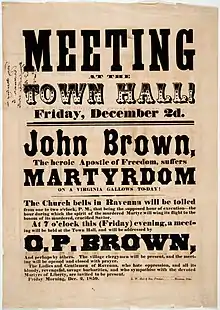 Many American abolitionists took an active role in opposing slavery by supporting the Underground Railroad.[54] This was made illegal by the federal Fugitive Slave Law of 1850, arguably the most hated and most openly evaded federal legislation in the nation's history. Nevertheless, participants like Harriet Tubman, Henry Highland Garnet, Alexander Crummell, Amos Noë Freeman, and others continued with their work. Abolitionists were particularly active in Ohio, where some worked directly in the Underground Railroad. Since only the Ohio River separated free Ohio from slave Kentucky, it was a popular destination for fugitive slaves. Supporters helped them there, in many cases to cross Lake Erie by boat, into Canada. The Western Reserve area of northeast Ohio was "probably the most intensely antislavery section of the country."[55] The Oberlin-Wellington Rescue got national publicity. Abolitionist John Brown grew up in Hudson, Ohio. In the South, members of the abolitionist movement or other people opposing slavery were often targets of lynch mob violence before the American Civil War.[56]