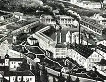 His son, Franz Anton Dreher (a.k.a. "the younger", 1736–1820), studied brewing near Pfullendorf, but had larger dreams and made the Swabian migration of 1760 to Vienna. After several years of hand-to-mouth living, including a long stint as a waiter in a local beer hall, in 1780, Dreher leased a small brewery in Ober-Lanzendorf; in 1782, he leased another brewery, and acquired some fields.[4] In 1796, he purchased, for 19,000 Thalers, a brewery in Klein Schwechat, outside of Vienna, with 46 acres (19 ha) and the Herberghaus (hostel).[5] Dreher married (i) Maria Anna Huber, daughter of a surveyor, who had learned something of the brewing trade. The couple had no children, and when she died in 1803, he married (ii) Katherine Widter, 1786–1864, a miller's daughter from Speichmühle near Petersdorf. They had four children: Clara, 1806–1885, who married Franz Aich (1803–1870), also from a well known family of brewers in Tyrnau; a daughter who died circa 1808; another daughter; and Anton Dreher (the elder), born 1810, married (i), Anna Wigrill (1816–1841), the daughter of a shipmaster and land owner from Krems and, after the death of his first wife, (ii) Ann Hersfeld, 1824–1884, daughter of an administrator for the family of Thurn-Taxis, in Regensburg. From the second marriage, his son and heir, Anton (1849–1921) was born.