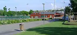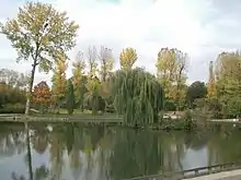 Antony is traversed by three[8] rivers: the Bièvre River[9] and its two tributaries, the Ruisseau des Godets[10] and the Ruisseau de Rungis.[11] One branch[12] of the Bièvre upstream flows in the open through Heller Park in an area where the Bièvre is maintained by the Inter-communal association for development of the Bièvre Valley. From there it has been channeled and covered since the decision of the municipal council on 26 October 1950[13] nearly all the way to Paris. It then becomes part of the network of the Inter-departmental association for sanitation of the Paris agglomeration. Since the early 2000s, the restoration of the open air to the Bièvre at Antony and downstream has been envisaged.[14] In 2003 this was done to Fresnes at the Pars des Prés on the edge of the La Fontaine district of Antony.